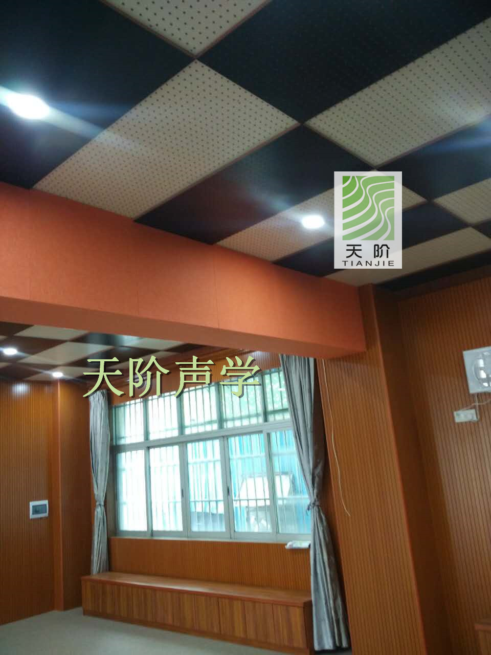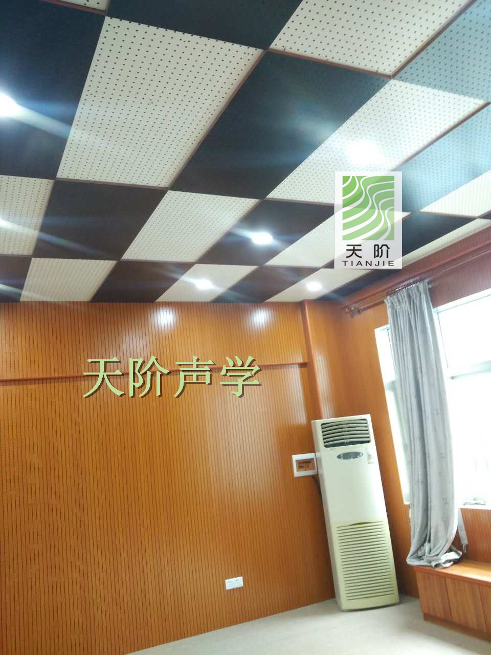 天階聲學(xué)孔木吸音板采用優(yōu)質(zhì)的中纖板、具有環(huán)保、防火、防水等性能,飾面顏色及材料選擇性廣,能很好地滿足客戶多樣化的聲學(xué)及裝飾需求。較槽木吸音板,孔木吸音板相對(duì)抗撞擊能力強(qiáng)。