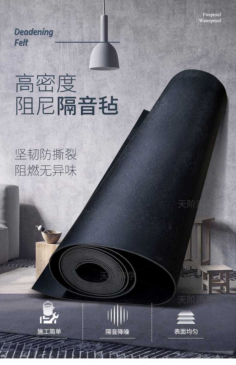 阻尼隔音氈以高純度精細(xì)鐵粉為原料,應(yīng)用新的減震隔音技術(shù),開發(fā)研制出針對地板、墻壁、管道的隔音材料。能夠有效地阻隔外界的噪聲,營造一個安全、安靜、舒適的環(huán)境。