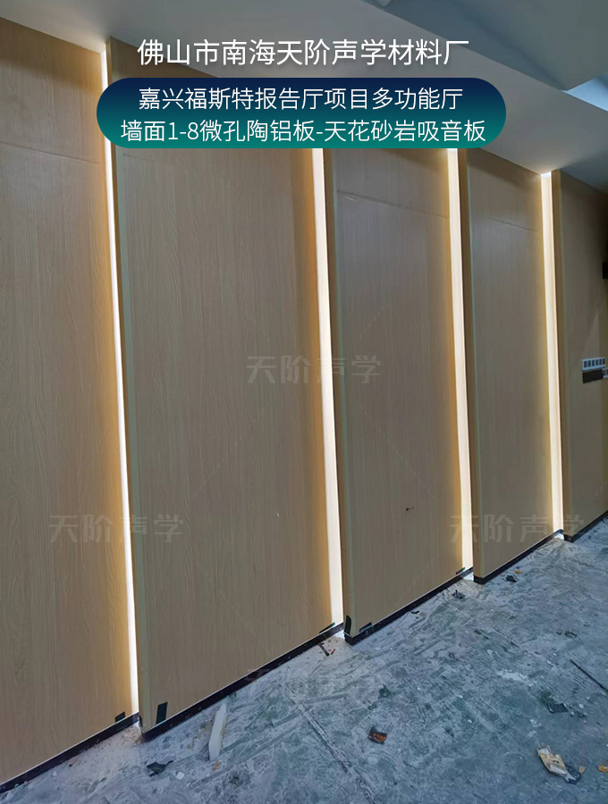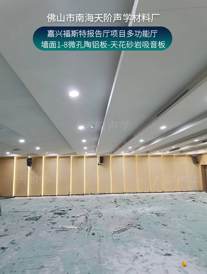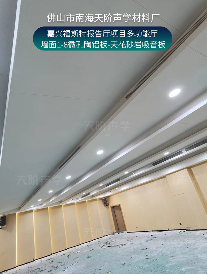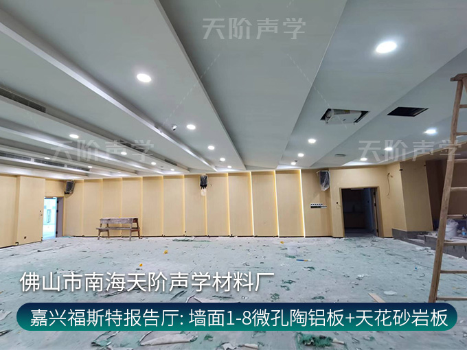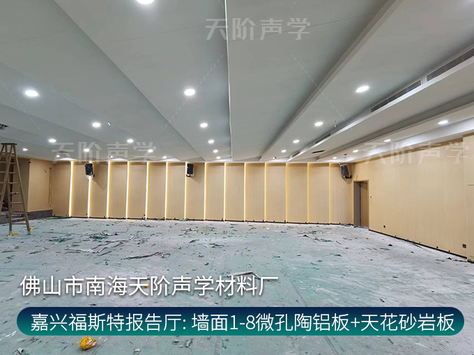 嘉興福斯特報(bào)告廳項(xiàng)目多功能廳-墻面1-8微孔陶鋁板-天花砂巖吸音板