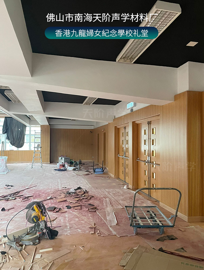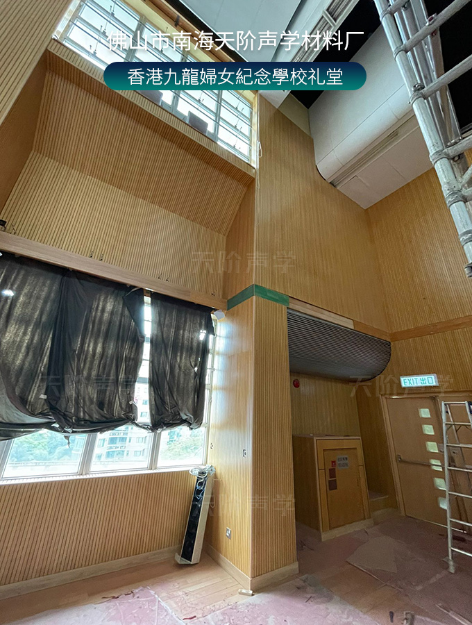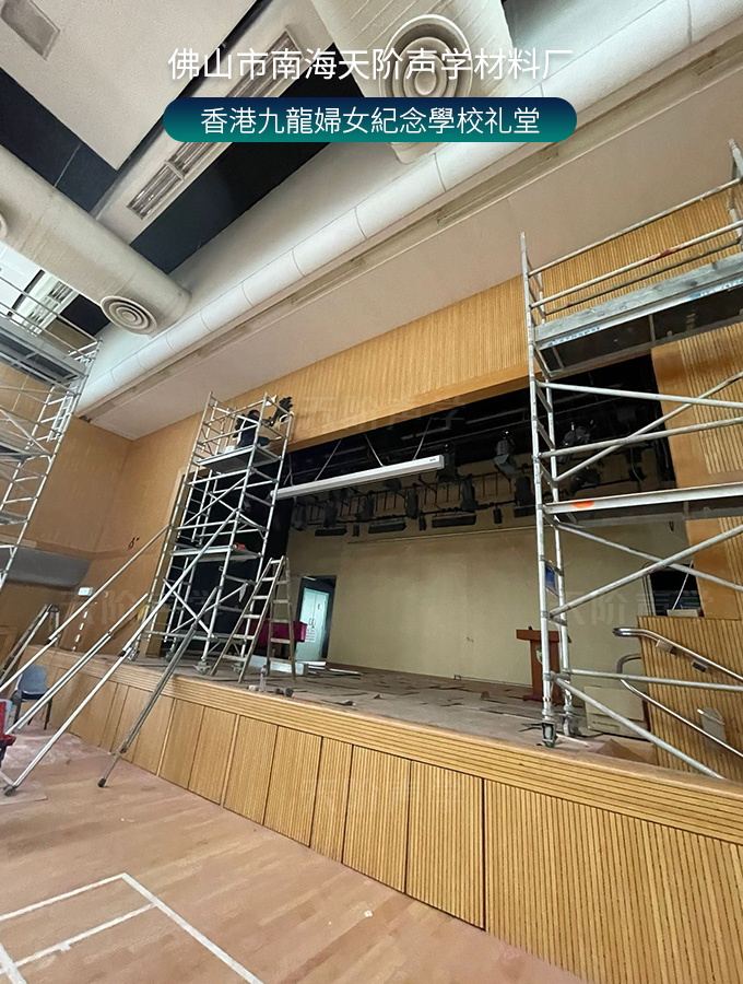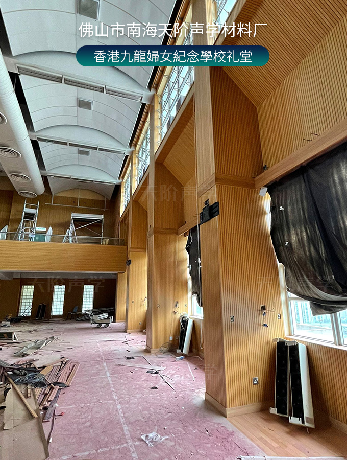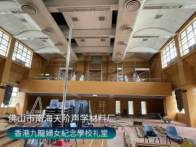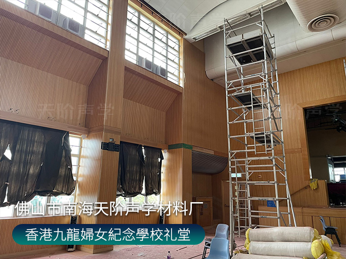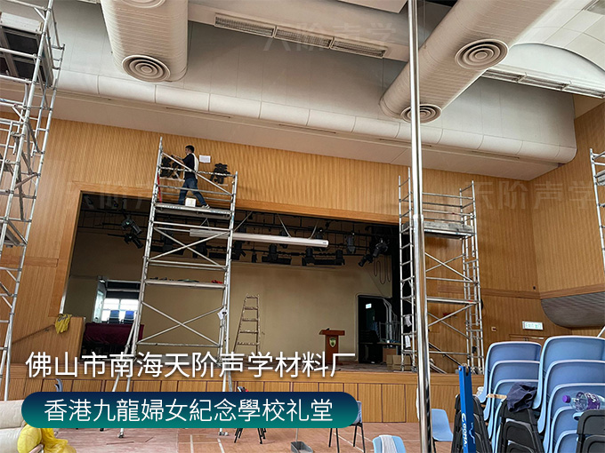 香港九龍婦女紀念學校禮堂,墻面安裝木質(zhì)吸音板