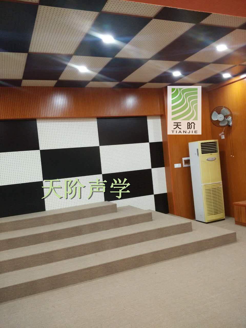 天階聲學(xué)孔木吸音板采用優(yōu)質(zhì)的中纖板、具有環(huán)保、防火、防水等性能,飾面顏色及材料選擇性廣,能很好地滿足客戶多樣化的聲學(xué)及裝飾需求。較槽木吸音板,孔木吸音板相對(duì)抗撞擊能力強(qiáng)。