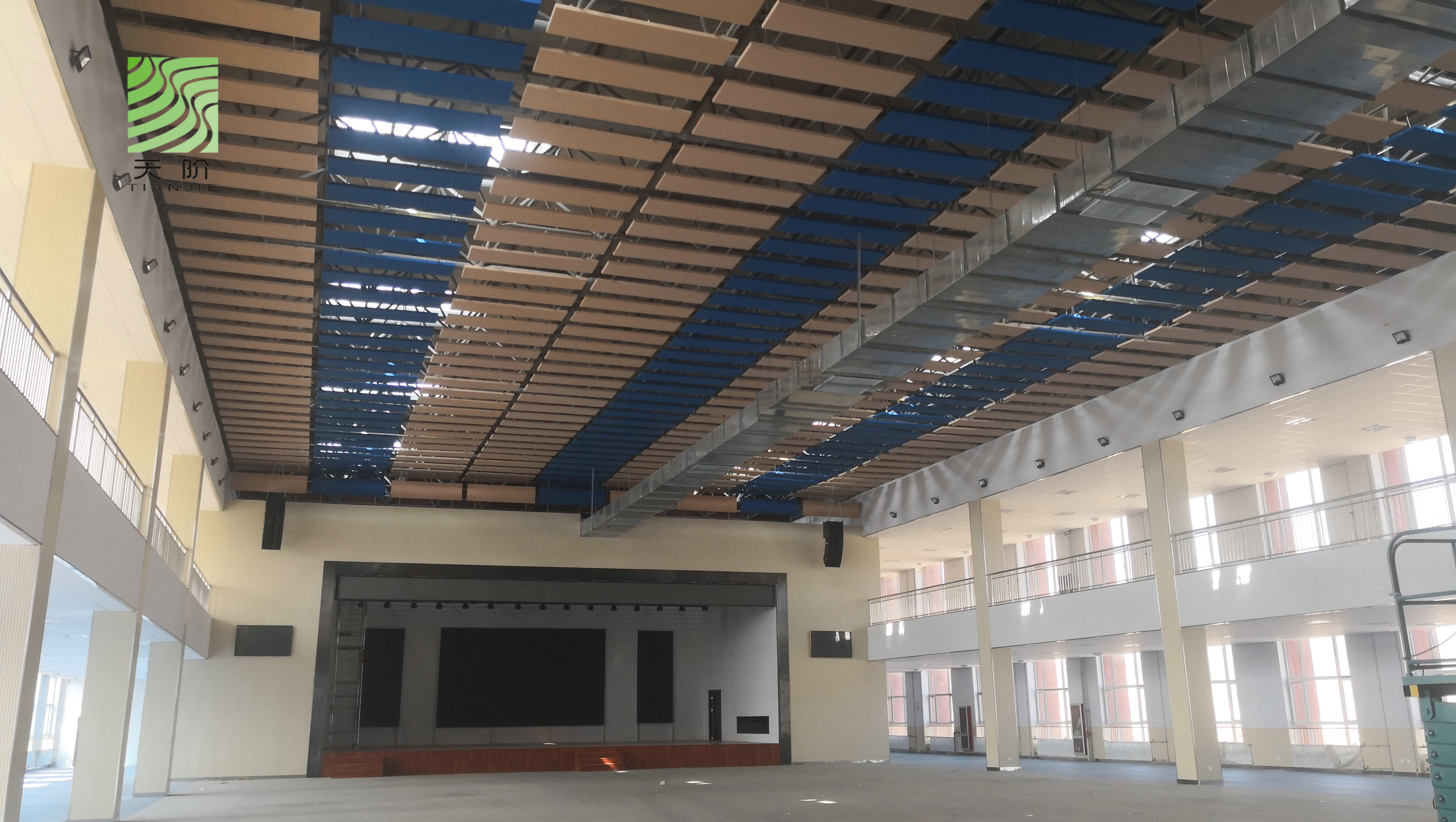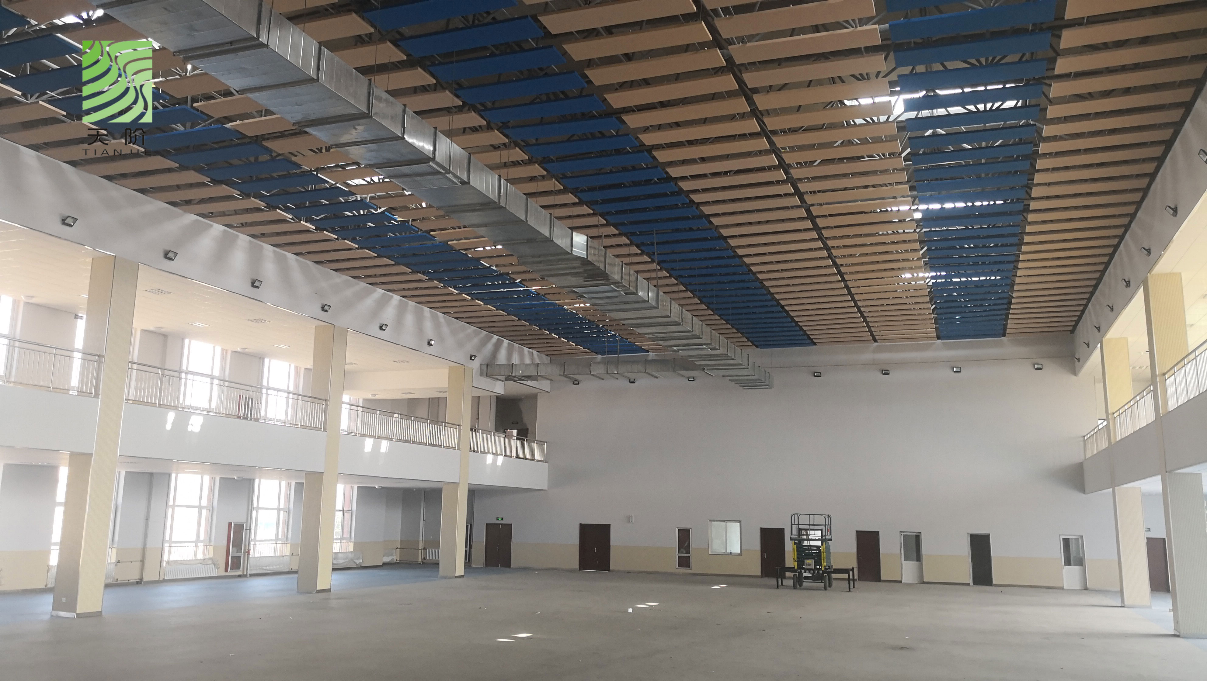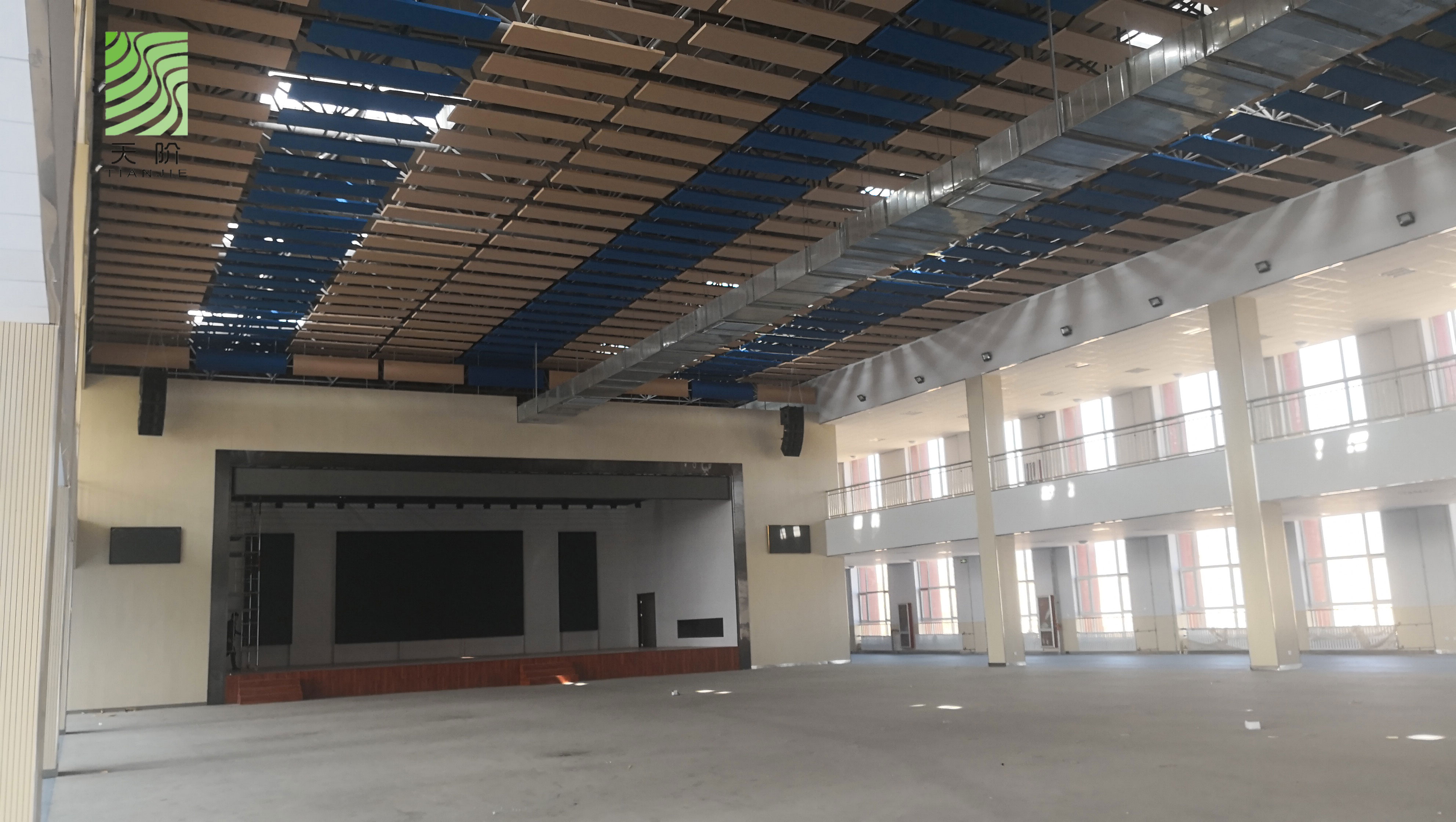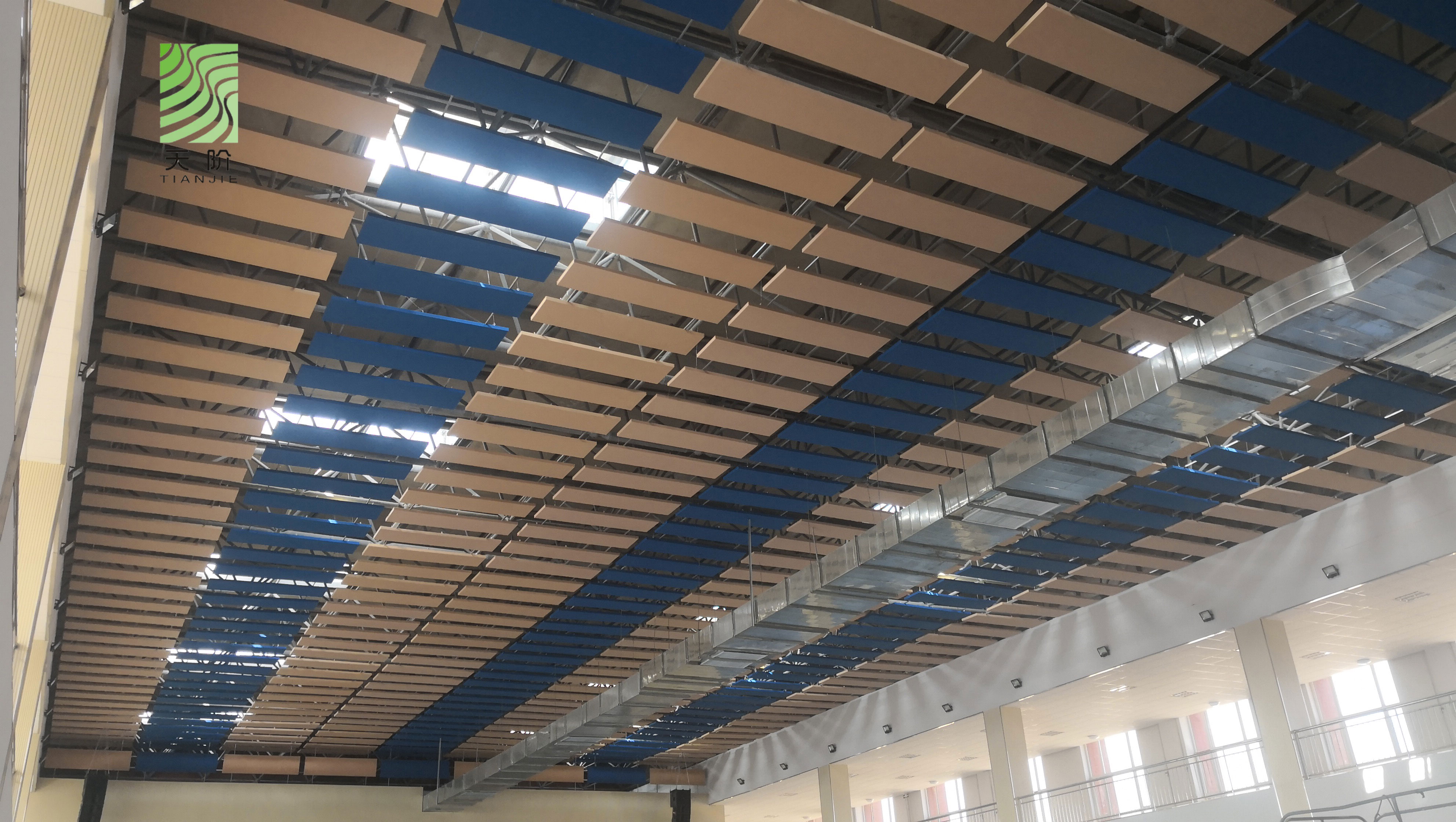 ⒈在棚頂安裝大面積的平面吸聲天花板。這種方法大量用于劇場、禮堂和屋頂為平面形的體育館,效果很好。但如用于弧形拱頂或采用透光屋頂?shù)捏w育館,這種方式會完全破壞了原來的風(fēng)格和采光功能,不可取。