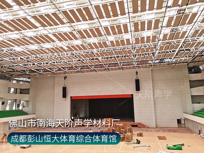 佛山天階吸音板生產(chǎn)廠家 發(fā)布日期:2021-04-08 成都彭山恒大體育綜合體育館項(xiàng)目,墻面使用槽木吸音板,基材選用不燃堅(jiān)硬的玻鎂基材,飾面選用活力青春的色調(diào)。條形開(kāi)槽吸音板,吸音效果顯著,能吸收活動(dòng)期間的噪音,回聲。