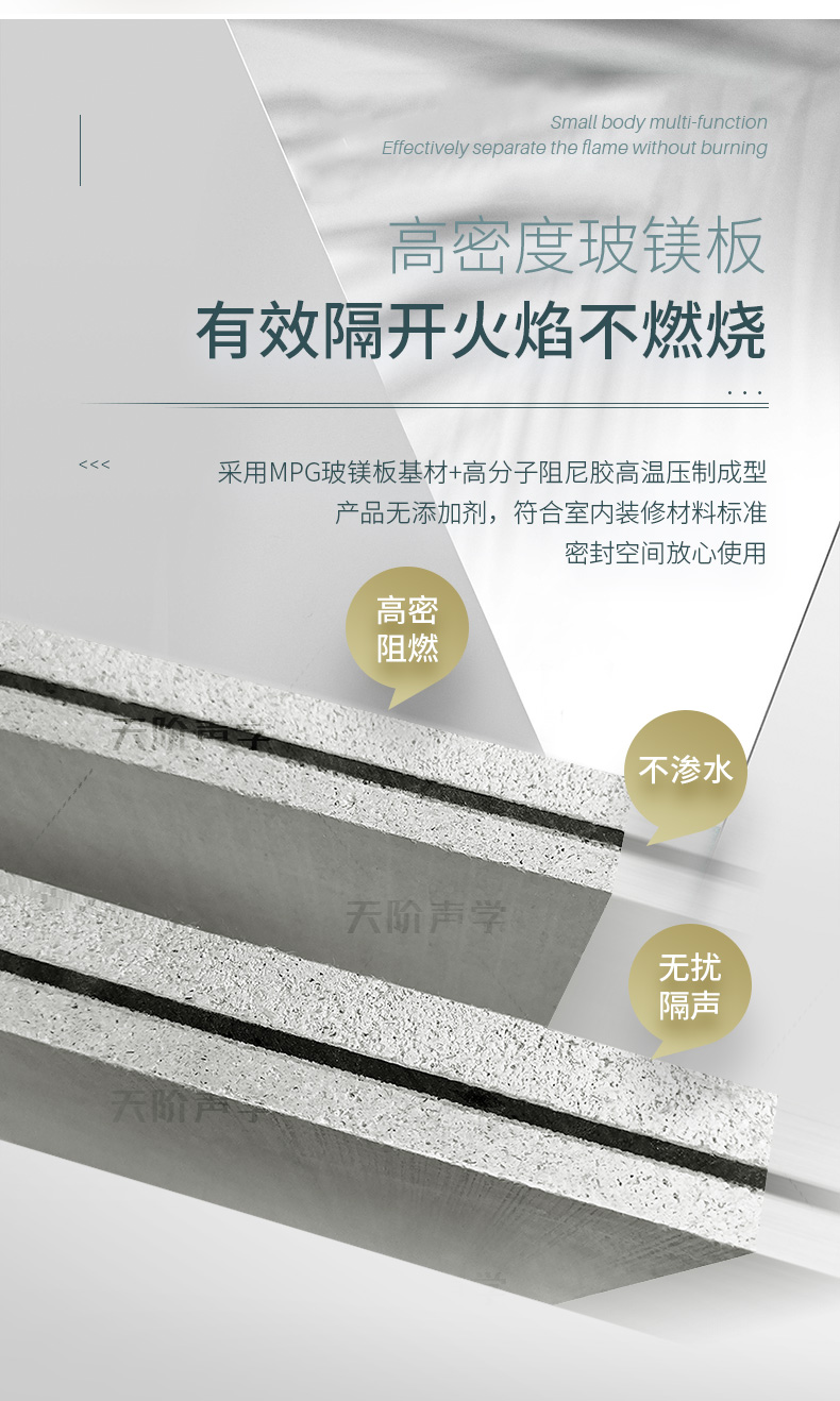 佛山天階吸音板生產廠家 發(fā)布日期:2021-06-12阻尼隔音板采用玻鎂基材,夾加高分子阻尼膠,三文治結構高壓復合成型,形成阻尼復合結構,改變原材質共振頻率,倍數(shù)提升原有材質空氣隔聲量和結構隔聲量。