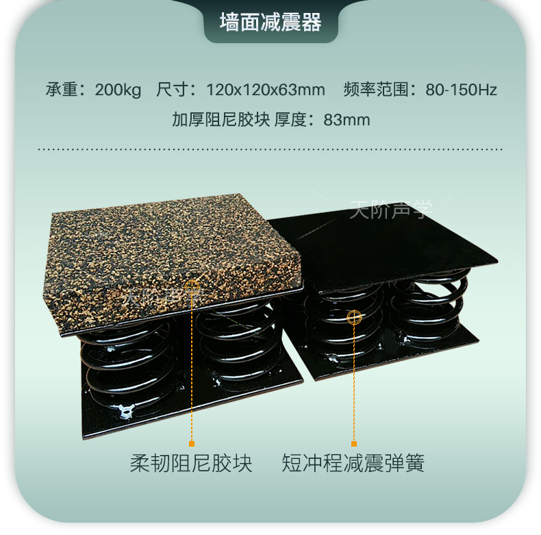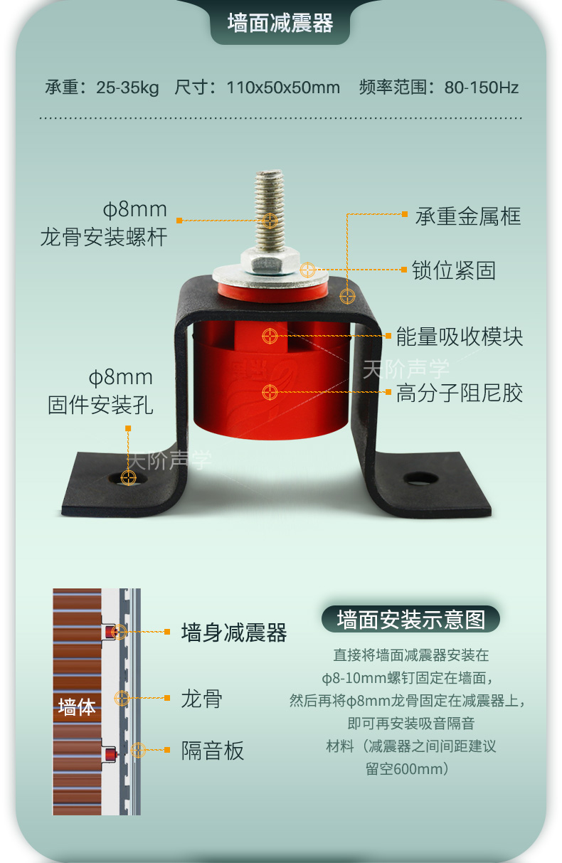 天花墻體隔音減震器是用于天花墻體隔音的必要構件。它特有的阻尼橡膠塊可以切斷聲橋的傳播,尤其對KTV、酒吧里有低音炮的地方,這是重要的隔音系統(tǒng)配件,不然,無論多少隔材料都無法將聲音阻隔于包廂房內。