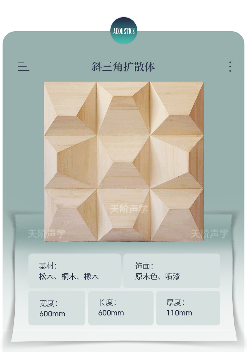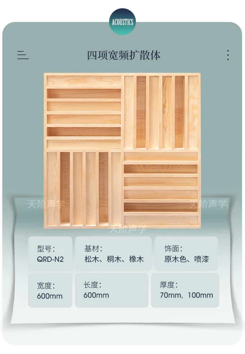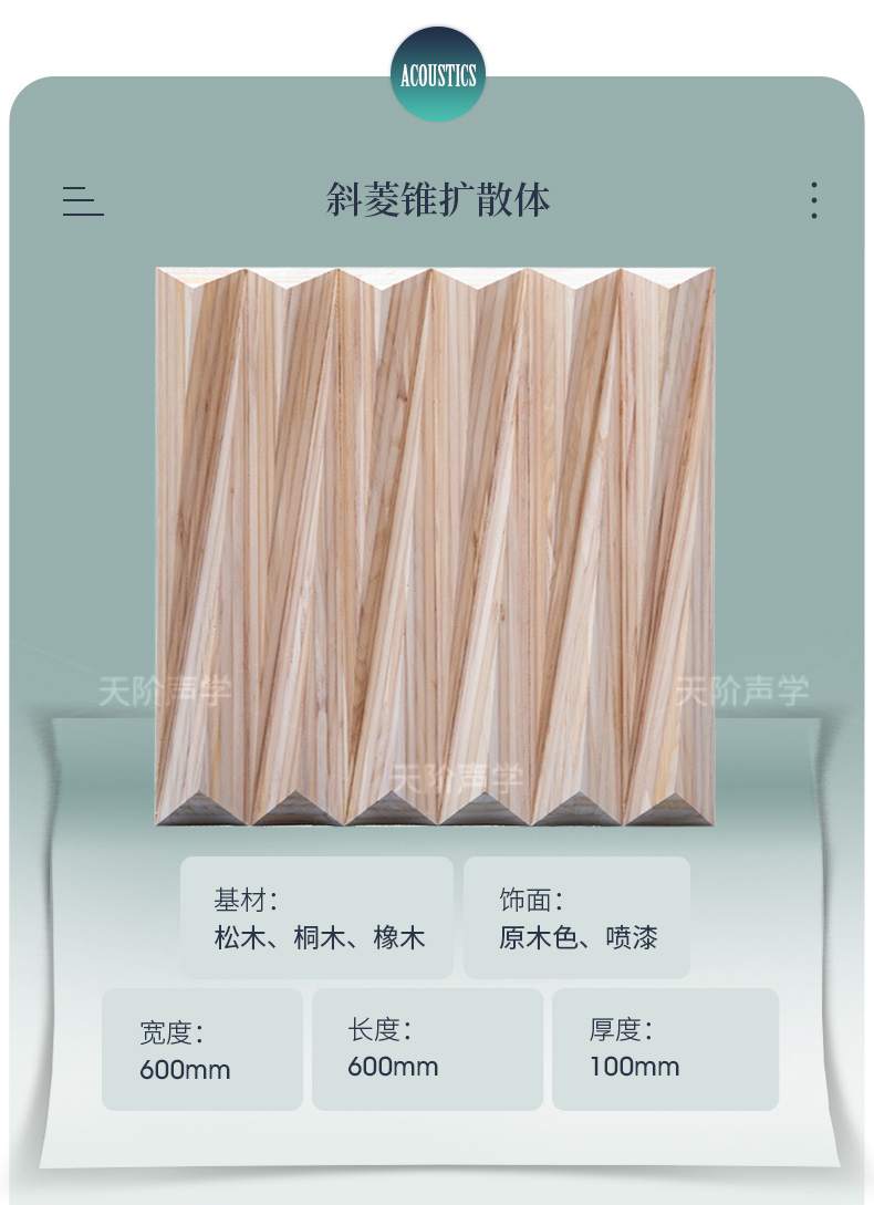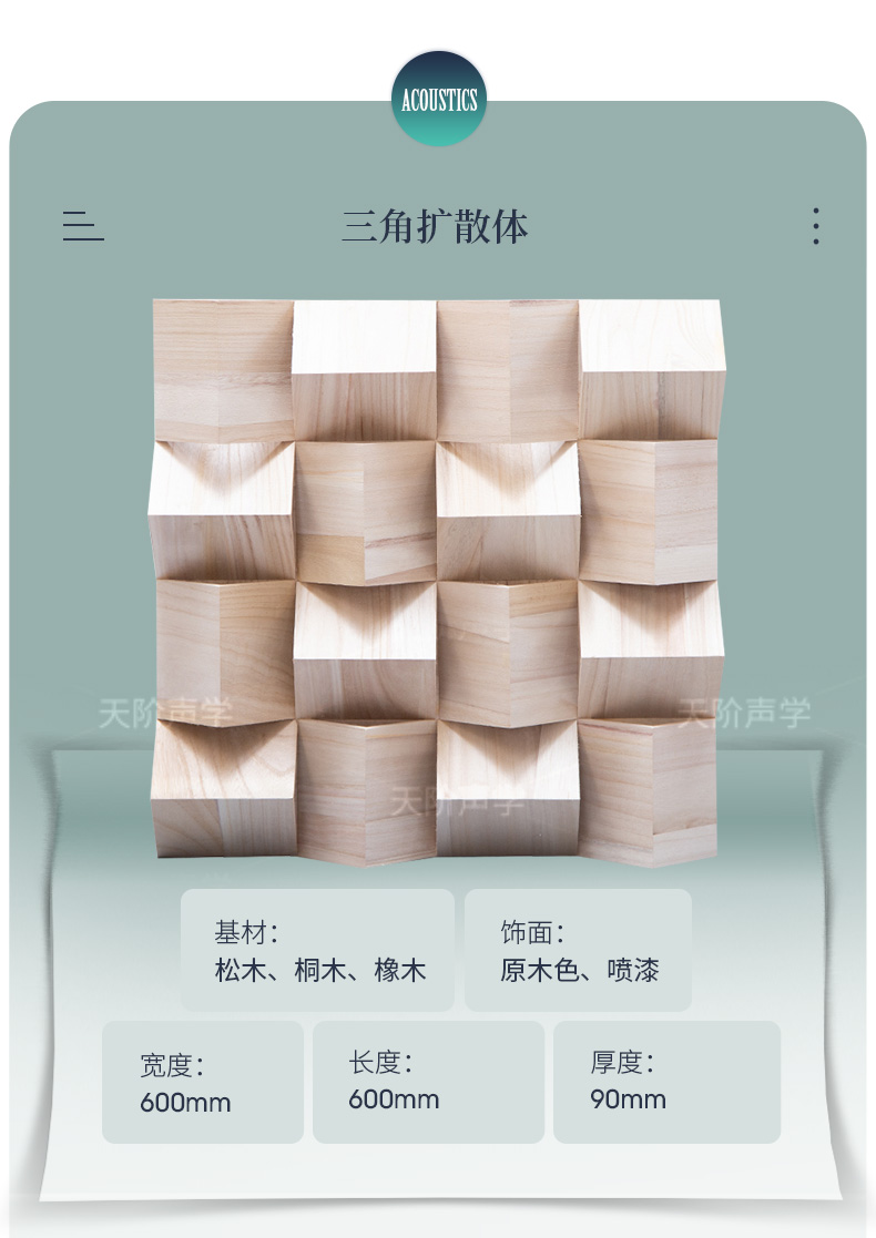 您現(xiàn)在的位置首頁 ? 槽木木質(zhì)吸音板 - 軟包 - 防火吸音板 - 聲學(xué)產(chǎn)品 ? 擴(kuò)散體木質(zhì)聲學(xué)擴(kuò)散體