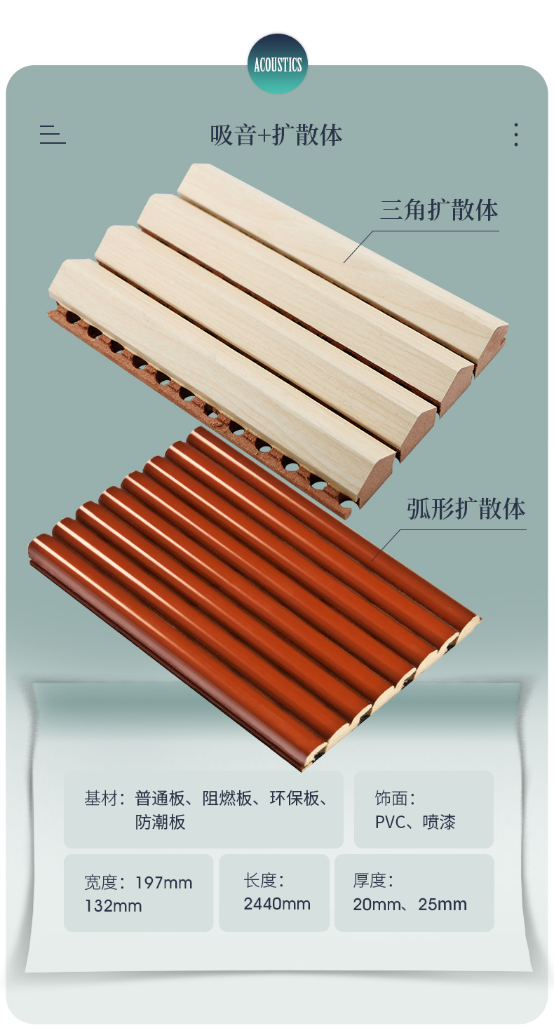 您現(xiàn)在的位置首頁 ? 槽木木質吸音板 - 軟包 - 防火吸音板 - 聲學產品 ? 擴散體木飾面三角擴散體